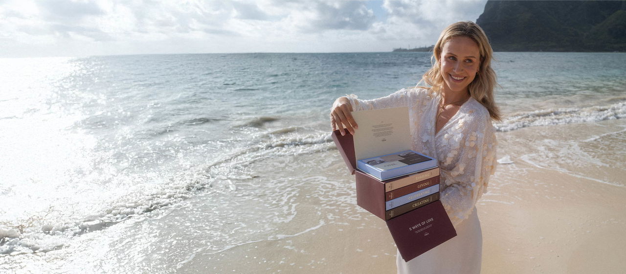 Click on the individual elements to explore the products. 5 coffee table books, each containing 5 jewelry pieces – inspired by the 5 Ways of Love.